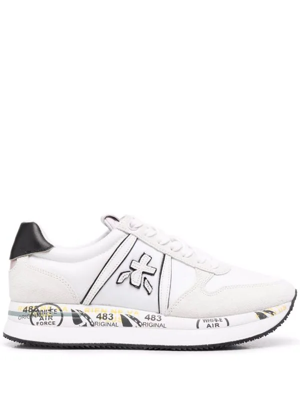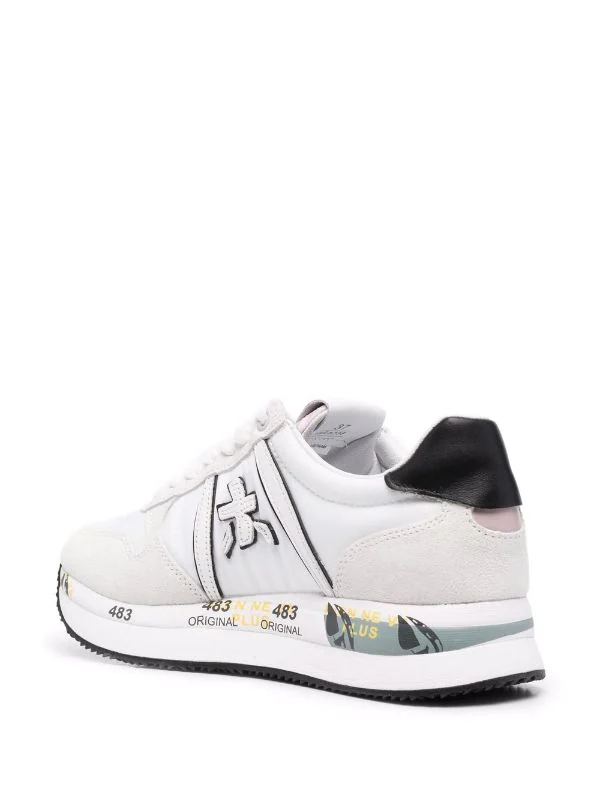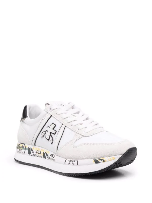 Kontrastdetails, runde Kappe, Logo-Patch an der Seite, Schnürung vorne, Logo-Patch an der Zunge, kontrastierende Fersenkappe, Logo-Prägung im Fußbett, flache Gummisohle.