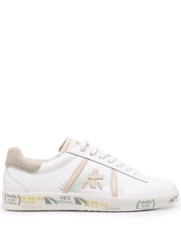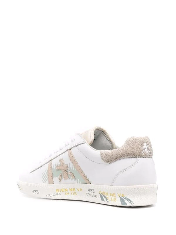 Logo-Patch an der Seite, Schnürung vorne, runde Kappe, flache Gummisohle. Farbe: Weiß. Material: Kalbsleder.