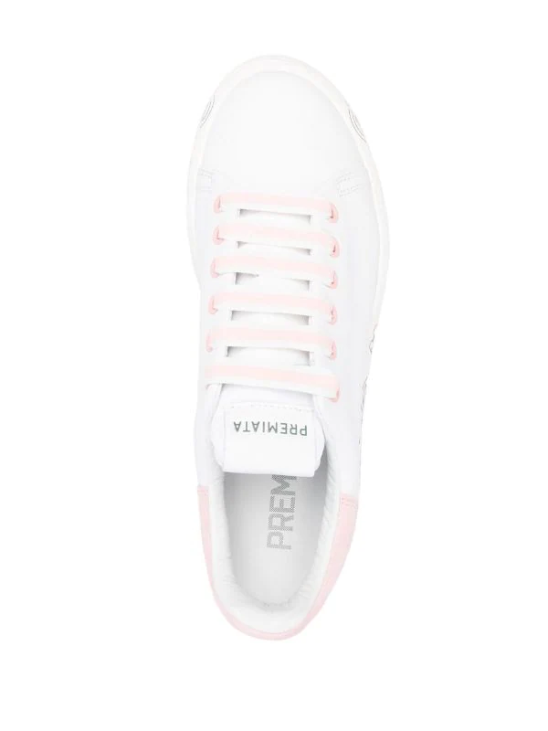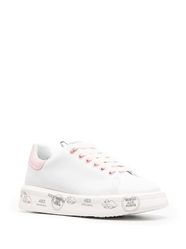 Weiß, Leder, Futter aus Leder, Print mit Stempeleffekt, Logo-Prägung im Fußbett, kontrastierende Fersenkappe, runde Kappe, Schnürung vorne, flache Gummisohle.
