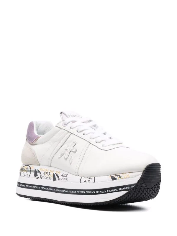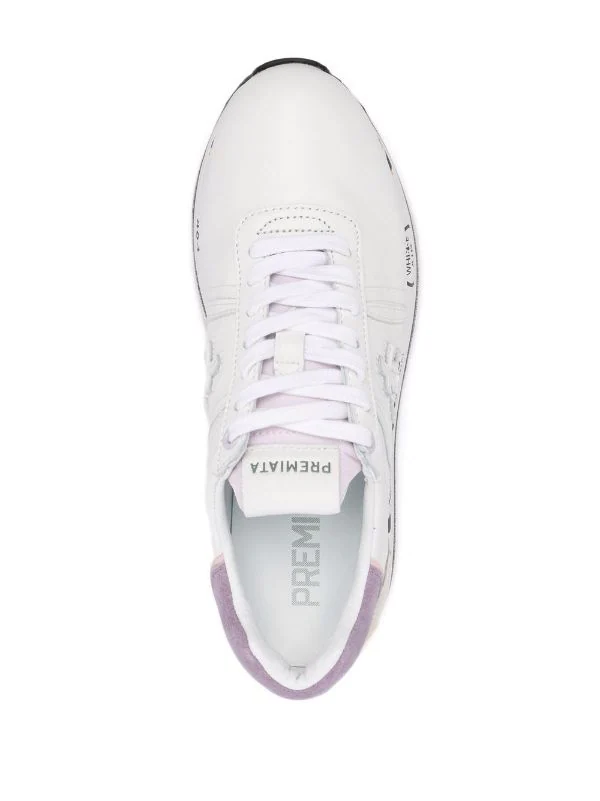 Schnürung vorne, runde Kappe, Logo-Prägung im Fußbett, klobige Gummisohle.