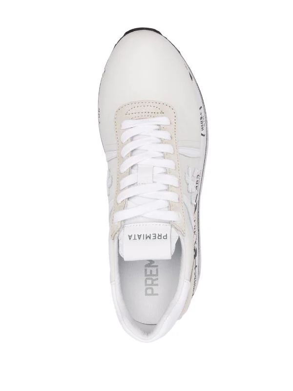 Logo-Prägung an der Seite, Schnürung vorne, runde Kappe. Farbe: Weiß. Material: Leder.