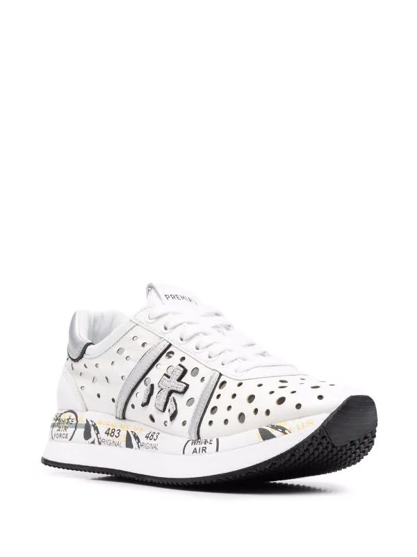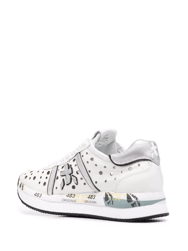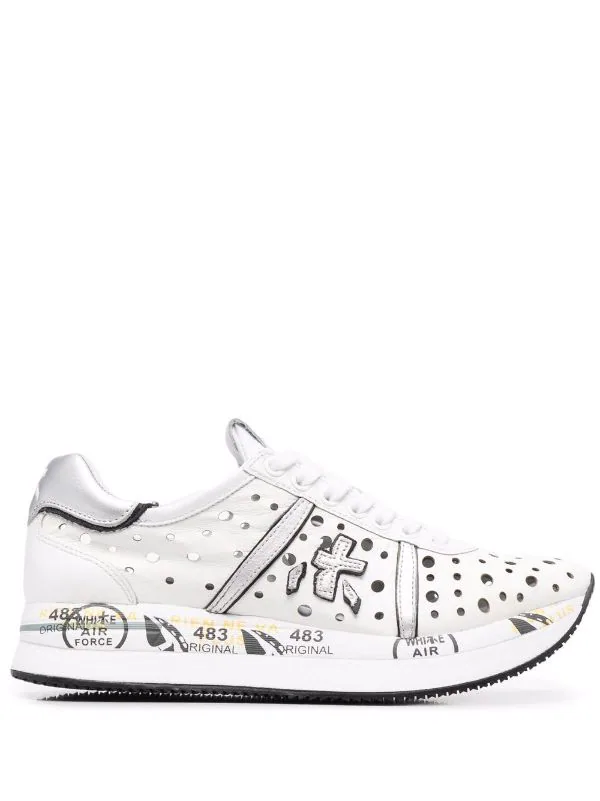 Perforiert, runde Kappe, Schnürung vorne, Logo-Patch an der Zunge, gefütterter Schaft, geriffelte Gummisohle. Farbe: Weiß. Material: Leder.