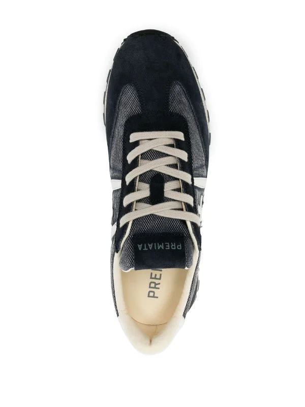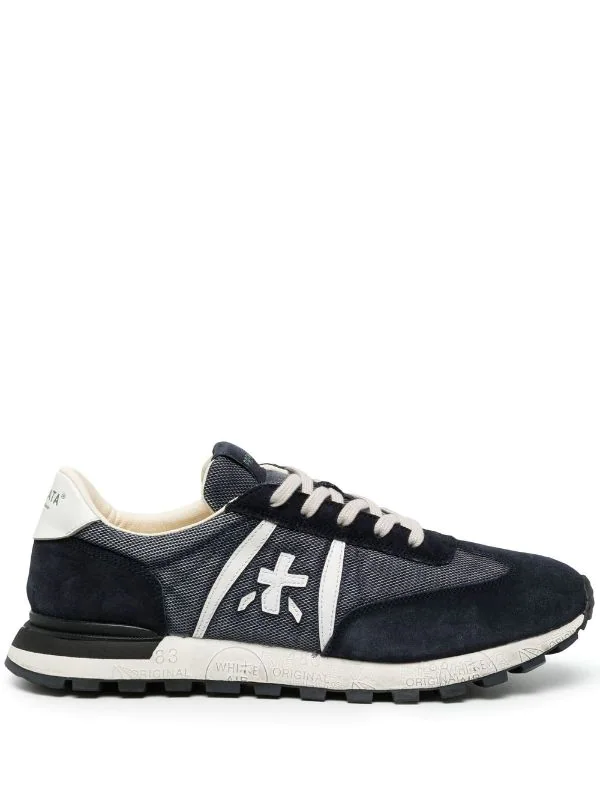 Kontrastdetails, Logo-Patch an der Seite, Logo-Patch an der Zunge, Kontrastferse mit Logo, Schnürung vorne, Logo-Prägung im Fußbett, runde Kappe, flache Gummisohle. Material: Leder.