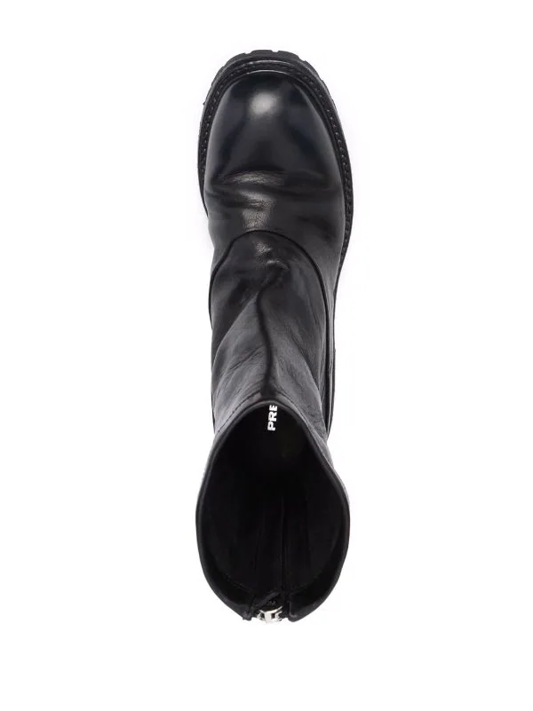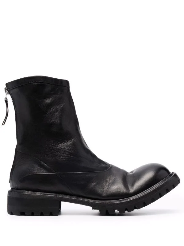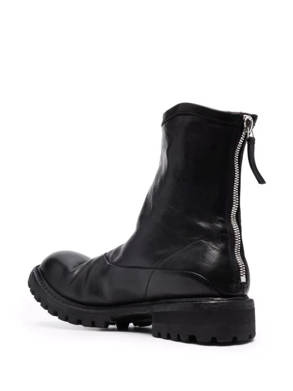 Reißverschluss hinten, runde Kappe, lässige Form. Farbe: Schwarz. Material: Leder.