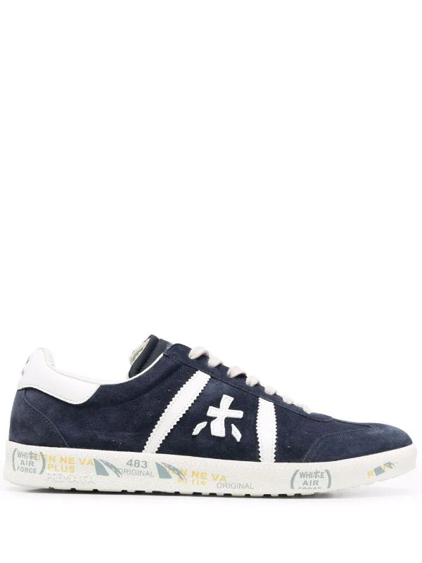 Wildleder, Kontrastdetails, Logo-Patch an der Seite, runde Kappe, Schnürung vorne, Zunge mit Logo-Print, Logo an der Fersenkappe, Sohle mit Logo, flache Gummisohle. Material: Kalbsleder.
