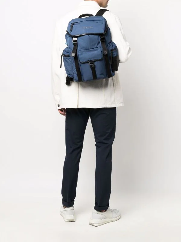 Mehrere aufgesetzte Taschen, Logo-Stickerei, zwei verstellbare Schulterriemen, Kordelzug. Farbe: Blau.