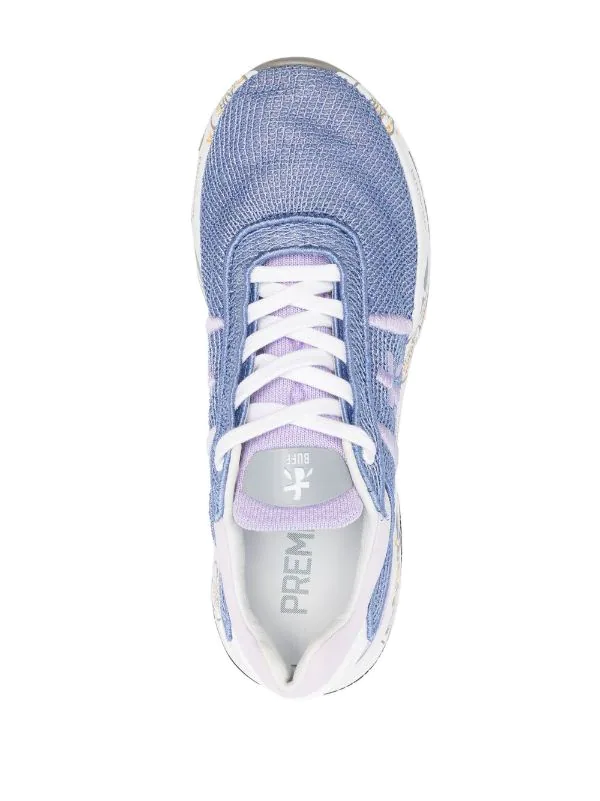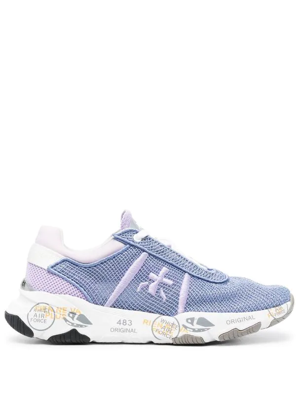 Logo-Prägung an der Seite, Mesh-Einsätze, runde Kappe, Schnürung vorne, geriffelte Gummisohle. Farbe: Blau.
