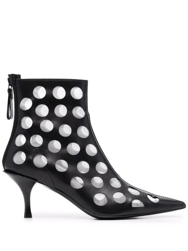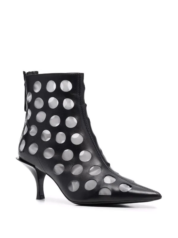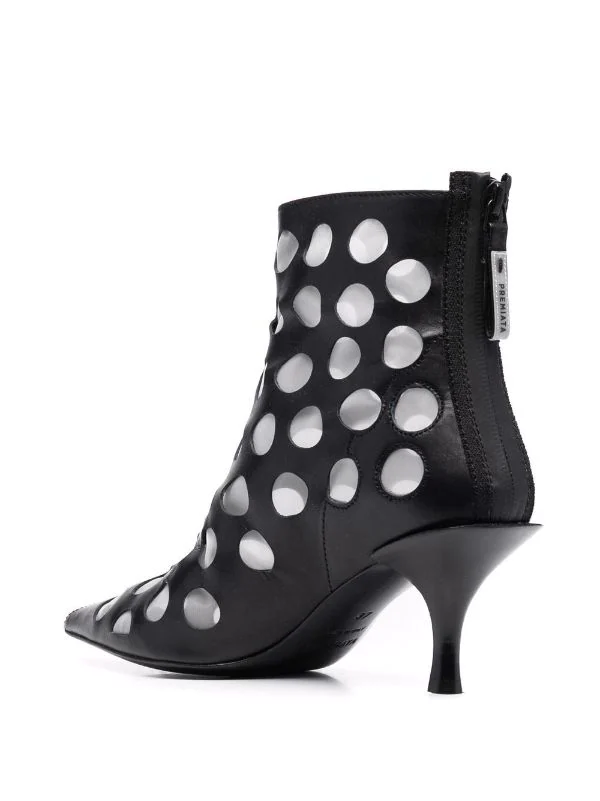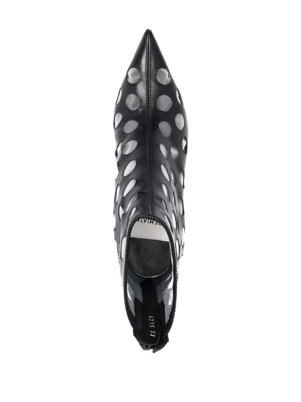 Cut-Outs, spitze Kappe, mittelhoher Absatz. Material: Leder.