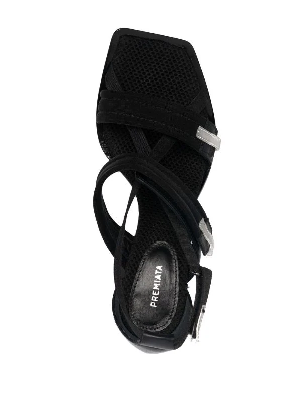 Logo-Patch an der Seite, zehenfrei, hoher Design-Absatz, Logo-Prägung im Fußbett. Farbe: Schwarz. Material: Kalbsleder.
