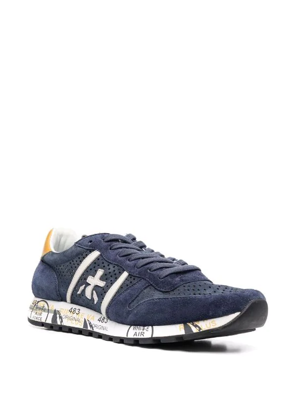 Kontrastdetails, Logo-Patch an der Seite, runde Kappe, Schnürung vorne, Logo-Patch an der Zunge, Logo an der Fersenkappe, Sohle mit Logo, flache Gummisohle. Material: Leder.