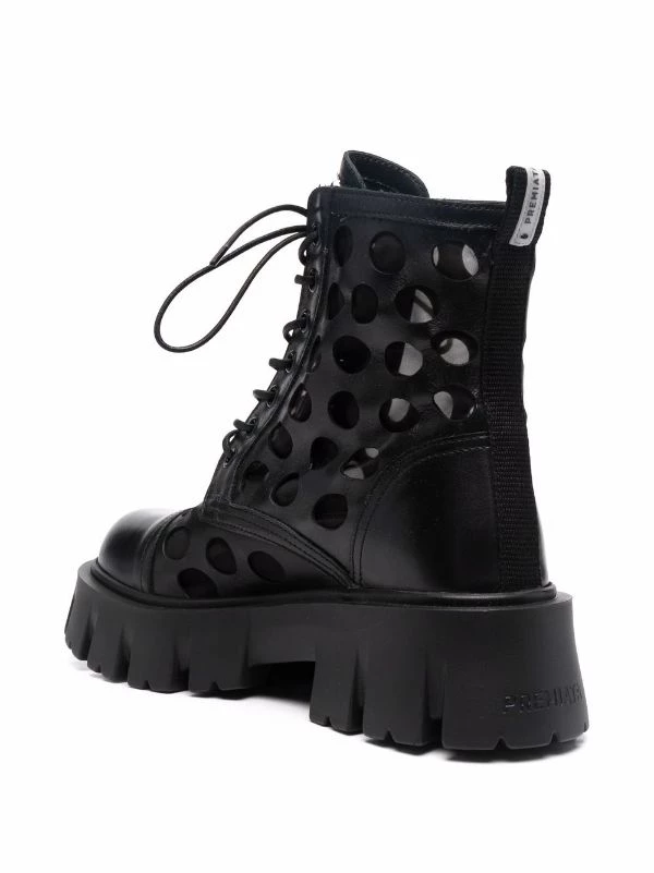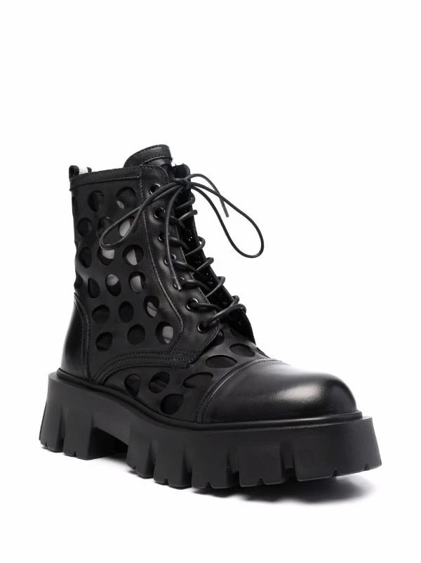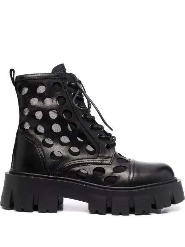 Aufeinander abgestimmte Farbtöne, gepunktet, Schnürung vorne, Profilsohle aus Gummi, Logo-Lasche an der Ferse. Farbe: Schwarz. Material: Leder.
