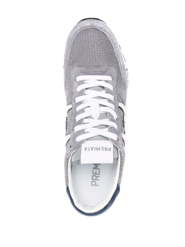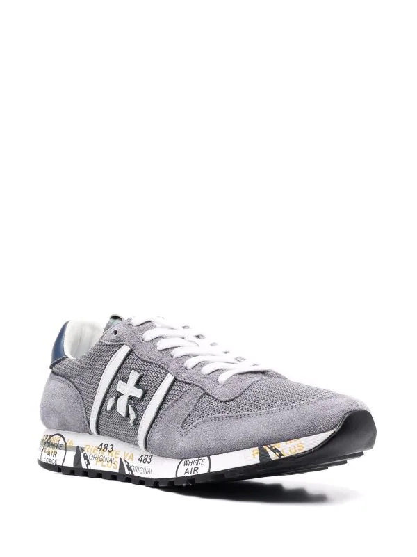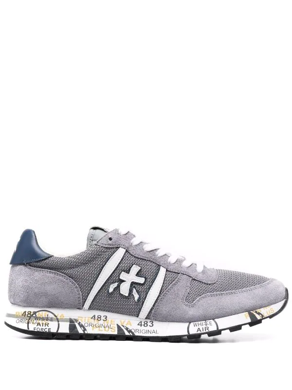 Kontrastdetails, Mesh-Details, Logo-Patch an der Seite, kontrastierende Fersenkappe, Logo-Patch an der Zunge, Schnürung vorne, runde Kappe, breite Profilsohle aus Gummi, Slogan-Print. Farbe: Grau.