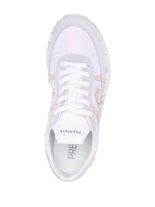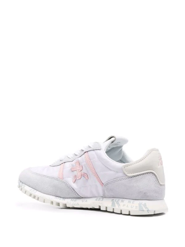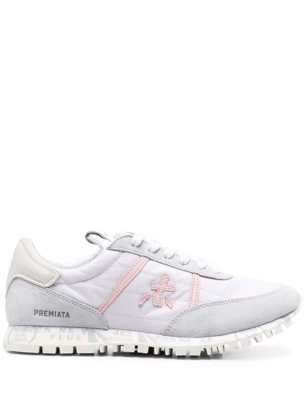 Kontrastdetails, Logo-Patch an der Seite, Logo-Prägung an der Seite, runde Kappe, Schnürung vorne, Logo-Patch an der Zunge, Logo-Prägung im Fußbett, Logo an der Fersenkappe, flache Gummisohle.
