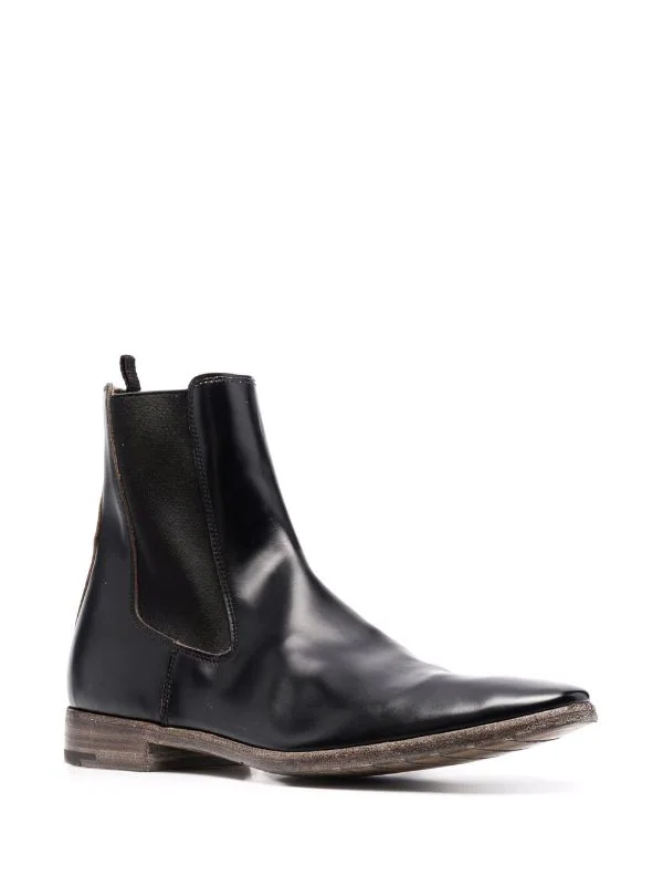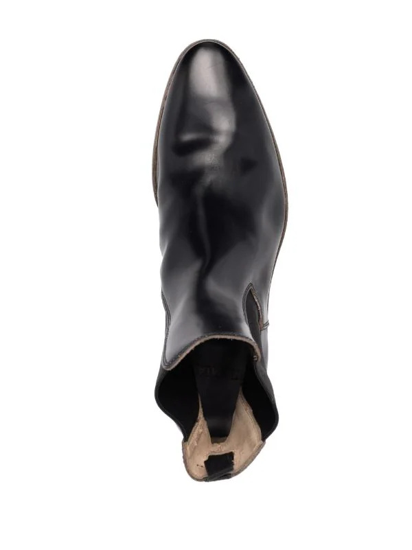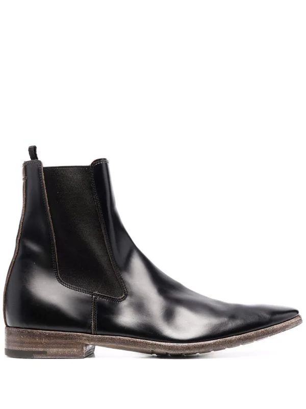 Spitze Kappe, Stretcheinsätze an den Seiten, ohne Verschluss, Logo-Prägung im Fußbett, Lasche an der Ferse, flache Sohle. Farbe: Schwarz. Material: Leder.