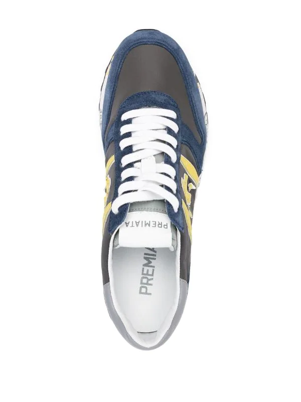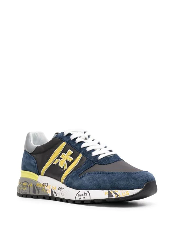 Electric Blue, Mehrfarbig, Leder, Kontrastdetails, Print mit Stempeleffekt, Logo-Prägung im Fußbett, runde Kappe, Schnürung vorne, flache Gummisohle.