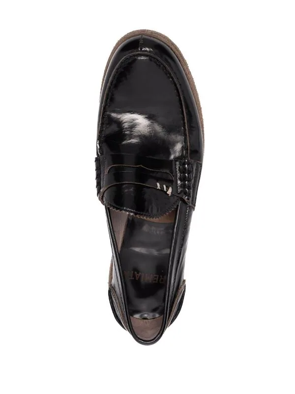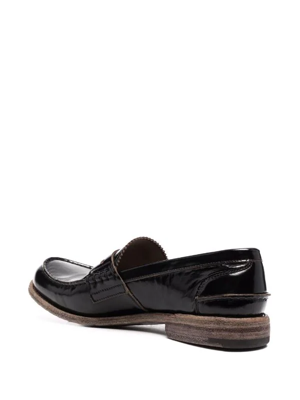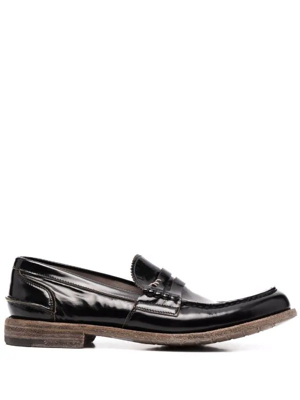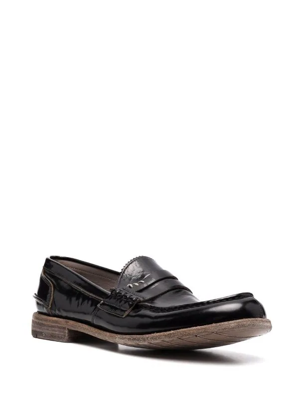Hochglanz-Finish, Penny-Riemen, runde Kappe, ohne Verschluss, Logo-Prägung im Fußbett, flache Ledersohle. Farbe: Schwarz. Material: Kalbsleder.