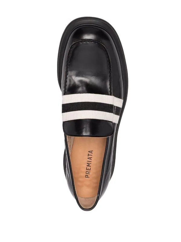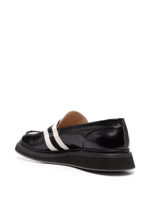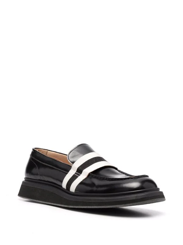Gestreift, runde Kappe, Logo-Prägung im Fußbett, flache Gummisohle. Farbe: Schwarz.