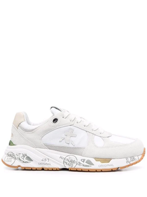 Wildleder-Einsätze, Ripstop-Gewebe, Logo-Patch an der Zunge, Logo-Patch an der Seite, runde Kappe, Schnürung vorne, Logo-Prägung im Fußbett, kontrastierende Fersenkappe, Gummisohle. Material: Wildleder.