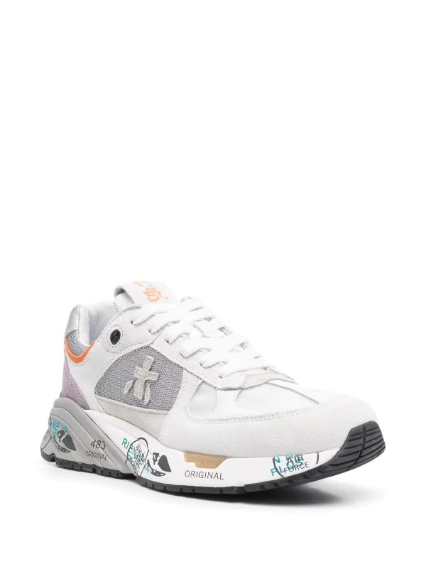 Mehrfarbig, Wildleder, Mesh-Einsätze, Kontrastdetails, Logo-Patch an der Seite, Logo-Patch an der Zunge, Schnürung vorne, runde Kappe, flache Gummisohle, Logo-Prägung im Fußbett.