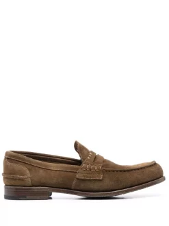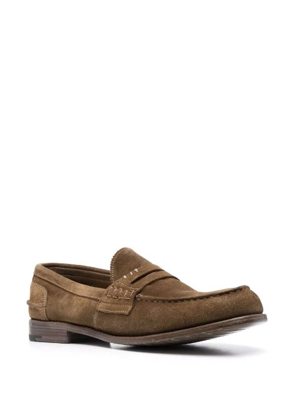 Wildleder, Ziernähte, ohne Verschluss, Logo-Prägung im Fußbett. Material: Leder.