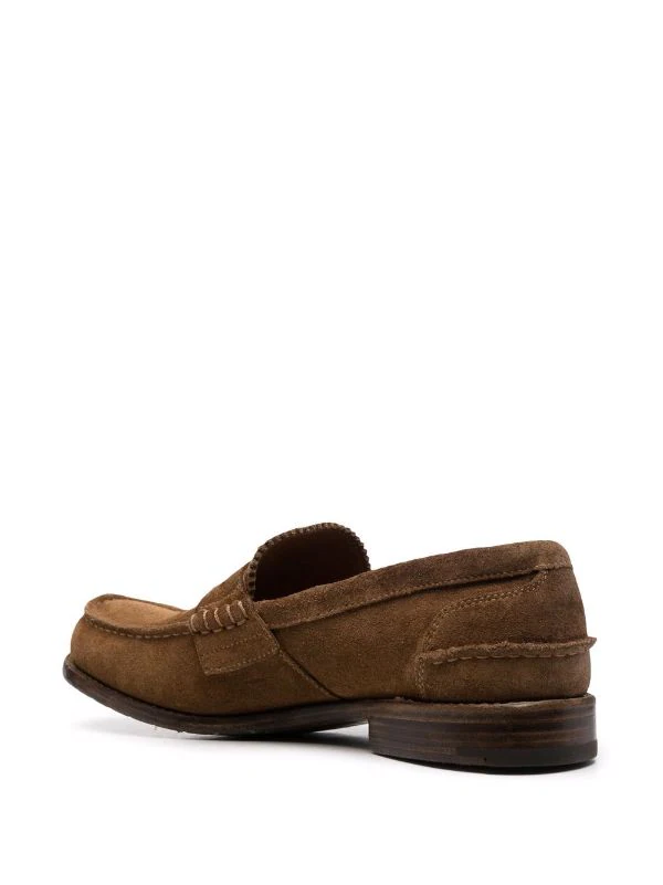 Ziernähte, Penny-Riemen, ohne Verschluss, runde Kappe, Logo-Prägung im Fußbett, niedriger Absatz, Ledersohle. Material: Leder.