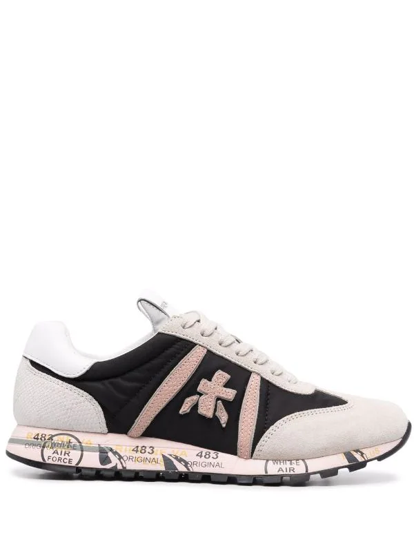 Colour-Block-Optik, Stempeldetail, ikonisches Kreuz-Motiv, Schnürung vorne, Logo-Patch an der Zunge, mandelförmige Kappe, Logo-Prägung im Fußbett, klobige Gummisohle. Material: Leder.