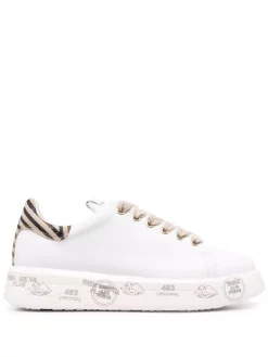 Runde Kappe, Schnürung vorne, flache Gummisohle. Farbe: Weiß. Material: Leder.