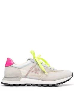 Kontrastdetails, bestickt, Kontrastferse mit Logo, Zunge mit Logo-Print, Schnürung vorne, runde Kappe, flache Gummisohle. Material: Leder.