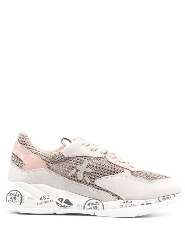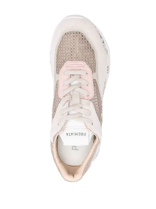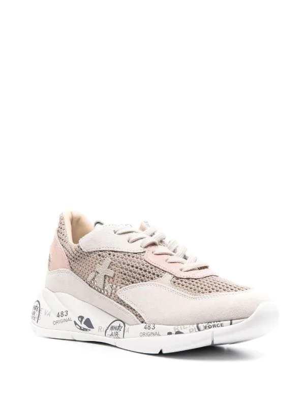 Gestricktes Design, Print mit Stempeleffekt, Logo-Patch an der Seite, Kontrastdetails, Schnürung vorne. Farbe: Nude. Material: Leder.