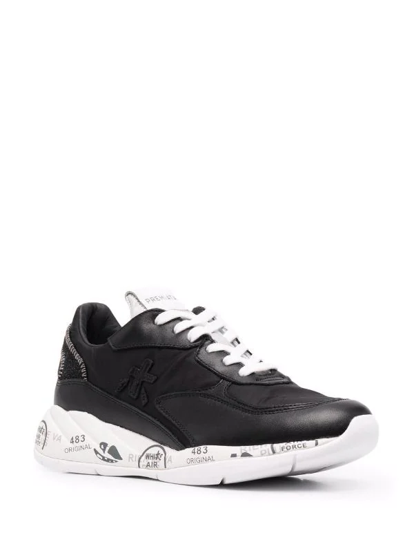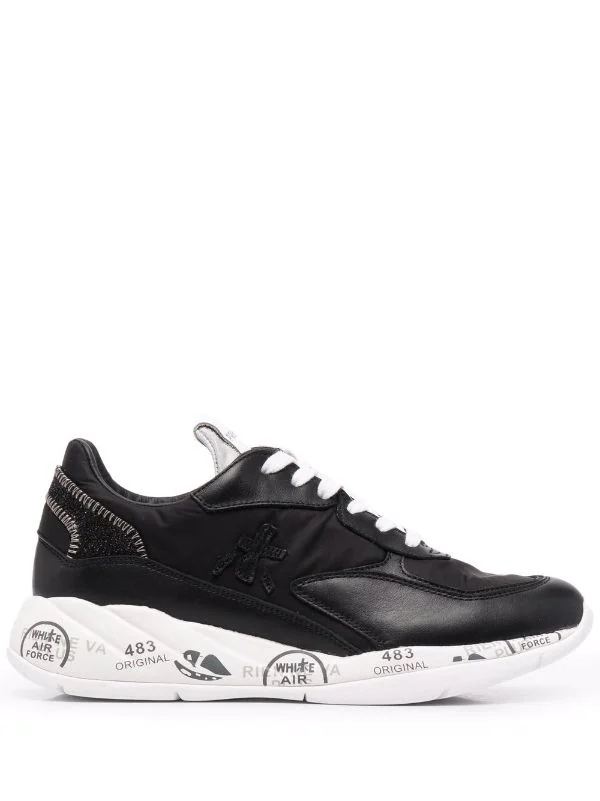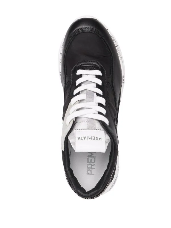 Logo-Patch an der Seite, seitlicher Logo-Print, Kontrastdetails, Schnürung vorne, runde Kappe, flache Gummisohle, Logo-Prägung im Fußbett. Farbe: Schwarz. Material: Leder.