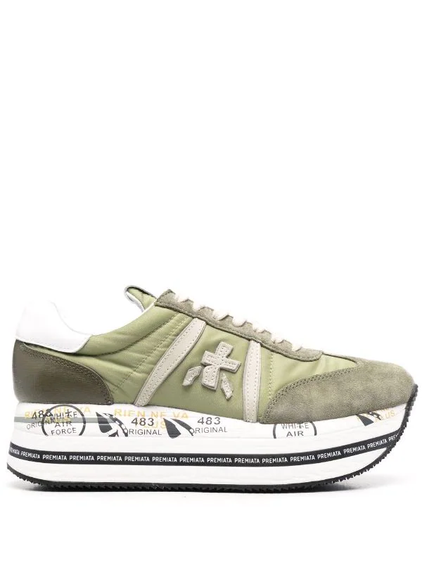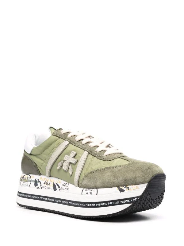 Logo-Patch an der Seite, Pleateausohle, Schnürung vorne, runde Kappe.
