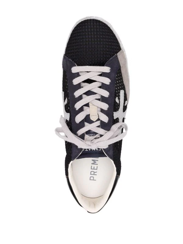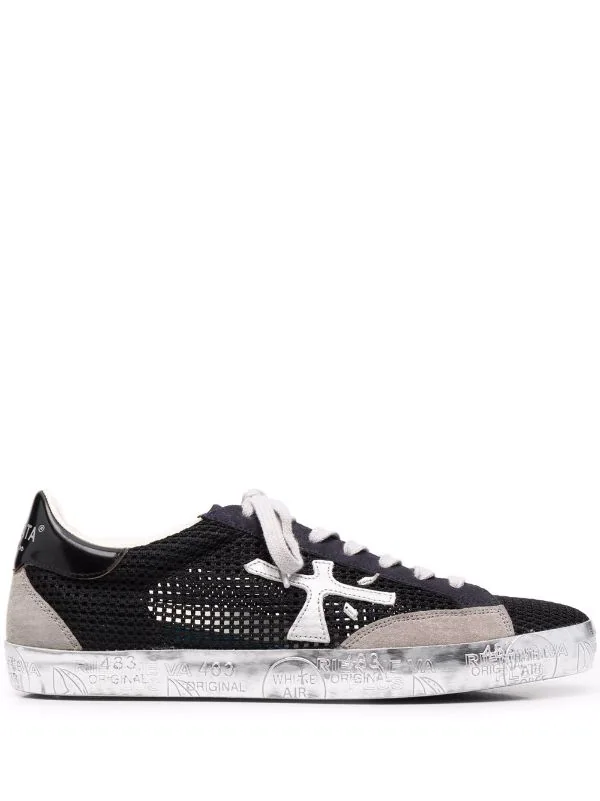 Logo-Patch an der Seite, Schnürung vorne, Mesh-Einsätze, kontrastierende Fersenkappe, Gummisohle. Material: Leder.