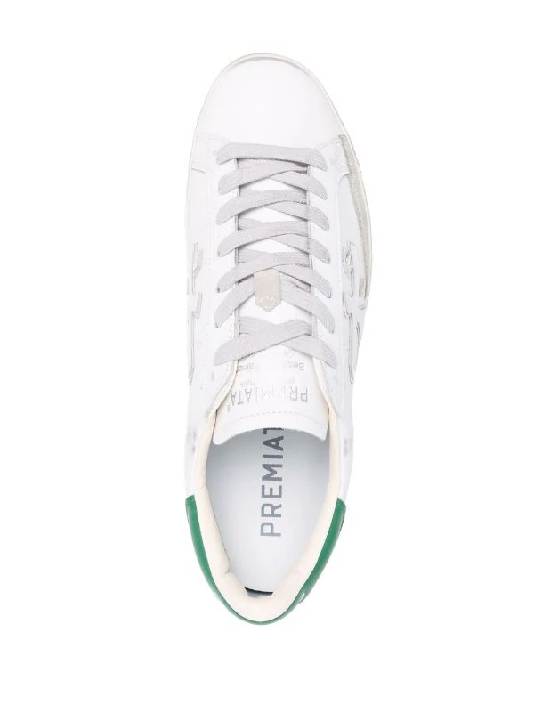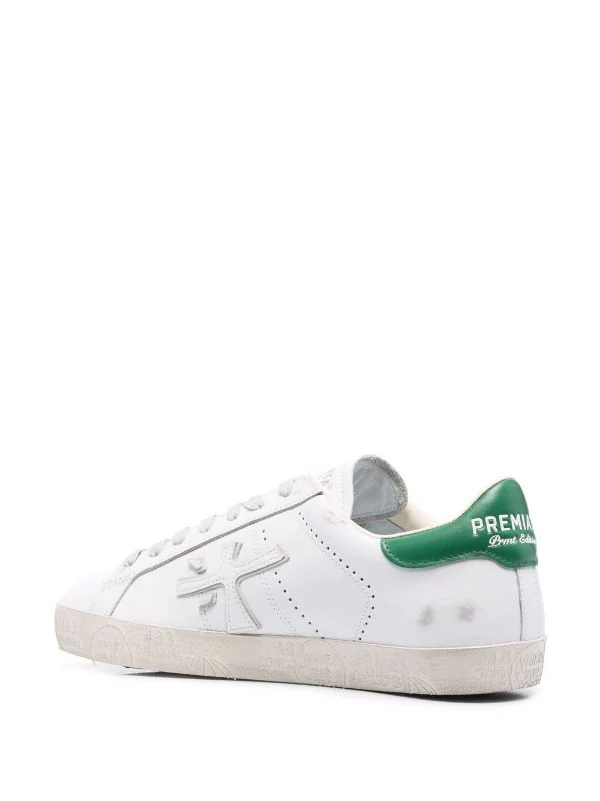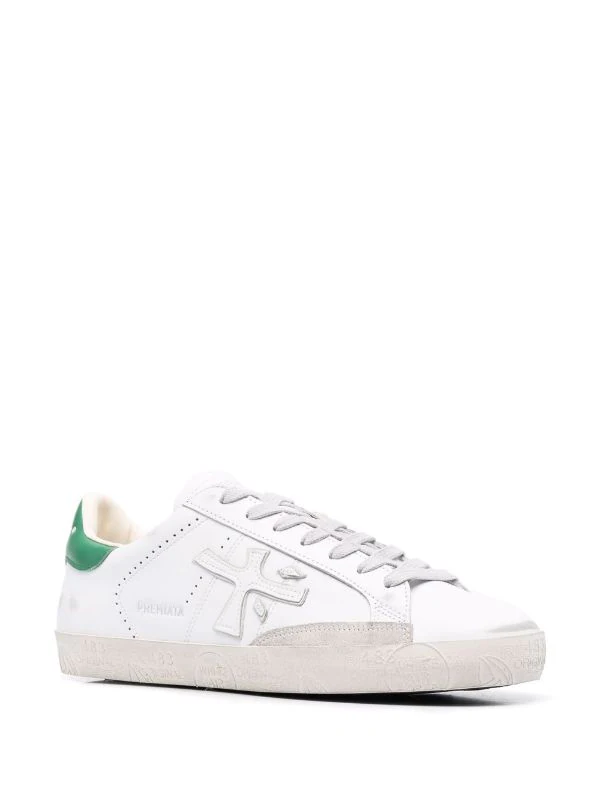 Kontrastdetails, Logo-Patch an der Seite, Kontrastferse mit Logo, Zunge mit Logo-Print, Schnürung vorne, runde Kappe, flache Gummisohle, Distressed-Effekt. Farbe: Weiß. Material: Leder.