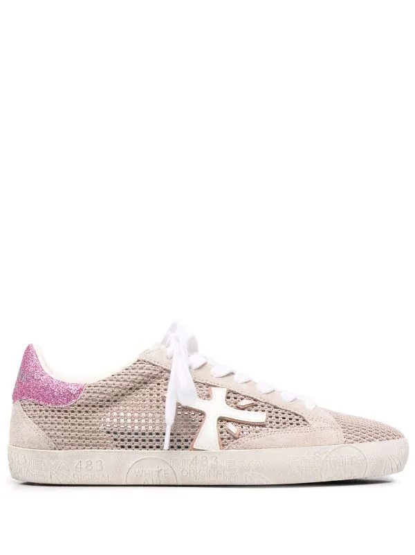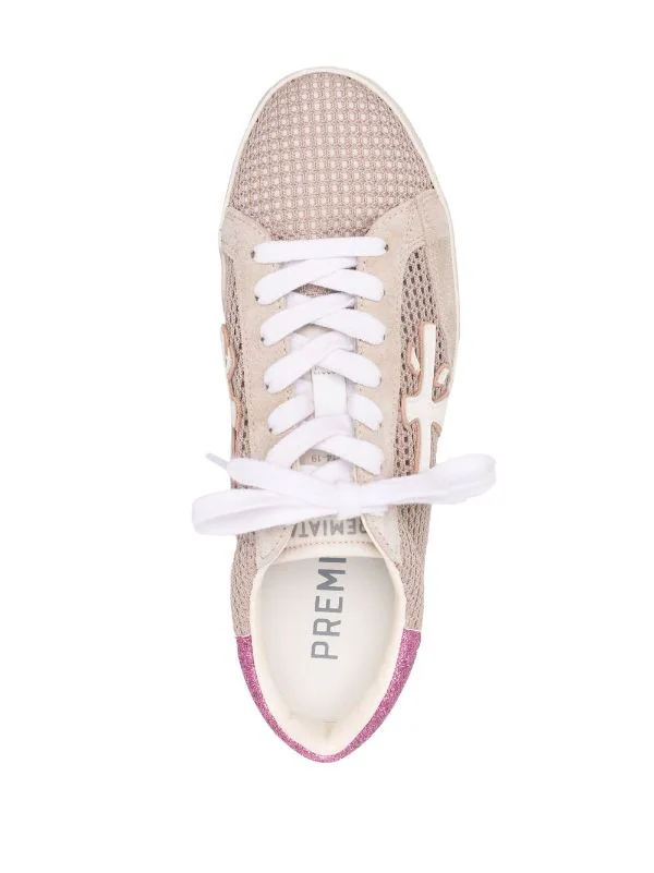 Logo-Patch an der Seite, Glitter-Details, durchgehend perforiert, runde Kappe, Schnürung vorne, Logo-Prägung im Fußbett, flache Gummisohle. Material: Leder.