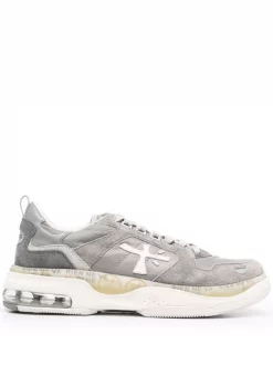 Wildleder, Kontrastdetails, Logo-Patch an der Seite, runder Ausschnitt, Schnürung vorne, Logo an der Fersenkappe, Lasche an der Ferse, Sohle mit Logo, klobige Gummisohle. Material: Kalbsleder.