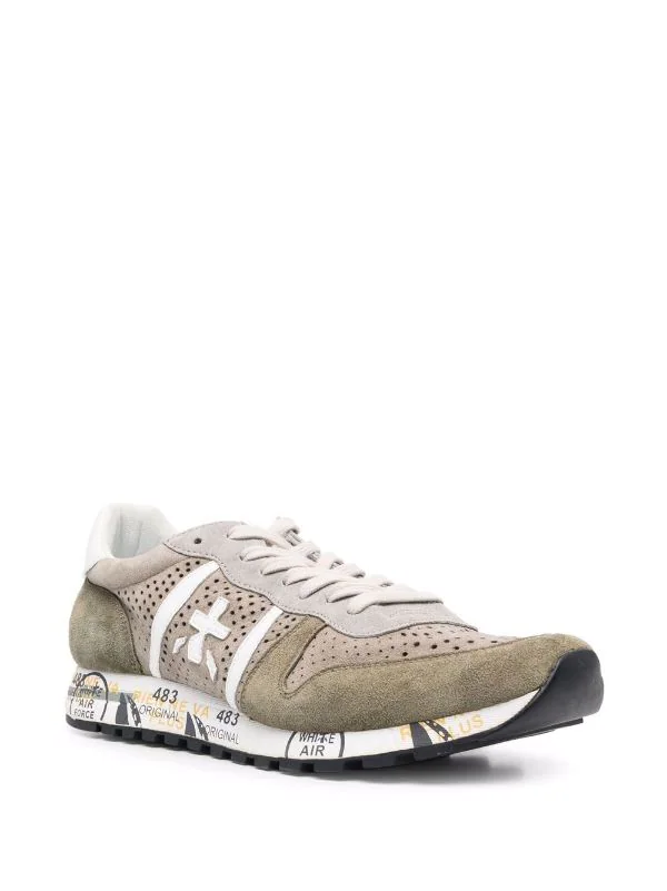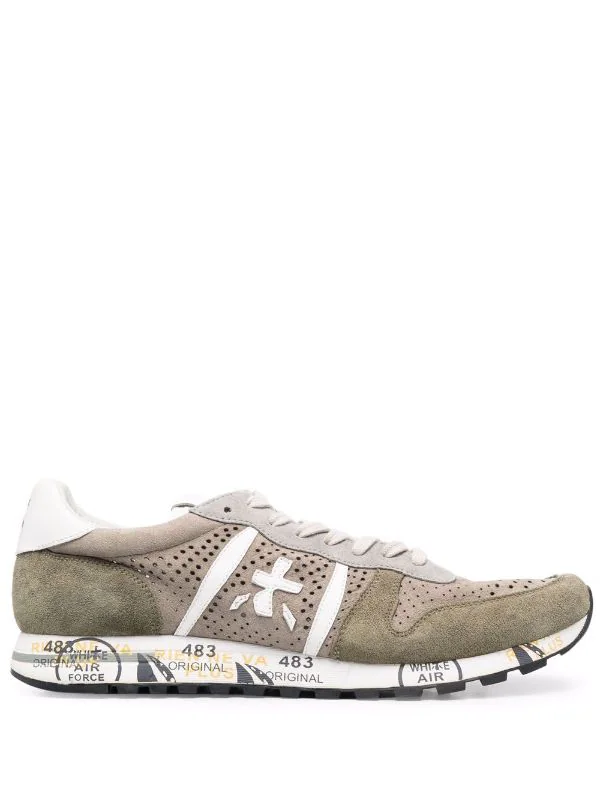 Wildleder, Kontrastdetails, Logo-Patch an der Seite, runde Kappe, Schnürung vorne, Logo-Patch an der Zunge, Logo an der Fersenkappe, Sohle mit Logo, flache Gummisohle. Material: Kalbsleder.