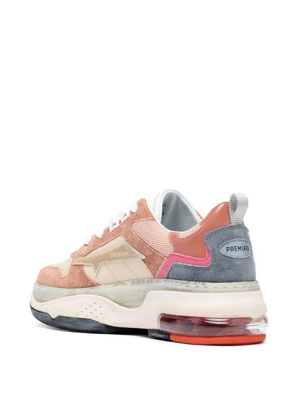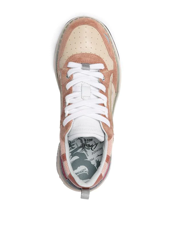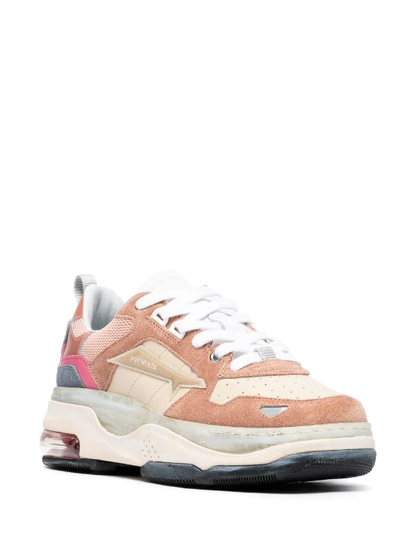 Wildleder-Einsätze, Schnürung vorne, klobige Gummisohle, Lasche an der Ferse, perforiert. Farbe: Mehrfarbig. Material: Kalbsleder.