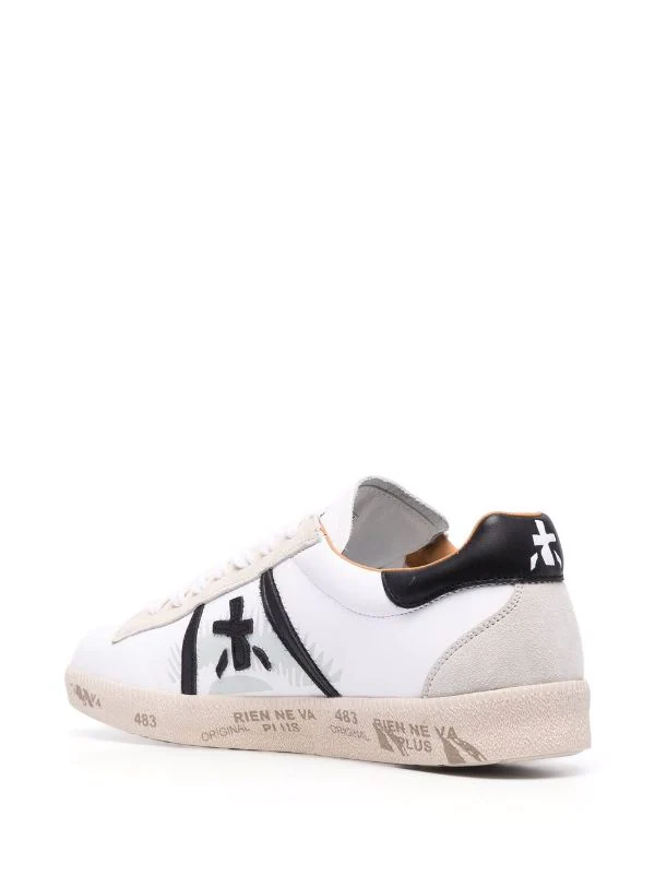 Logo-Patch an der Seite, runde Kappe, Schnürung vorne, Logo-Prägung im Fußbett, kontrastierende Fersenkappe, Gummisohle. Farbe: Weiß. Material: Leder.