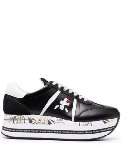 Logo-Patch an der Seite, kontrastierende Fersenkappe, Logo-Patch an der Zunge, Pleateausohle, runde Kappe, Schnürung vorne. Material: Leder.