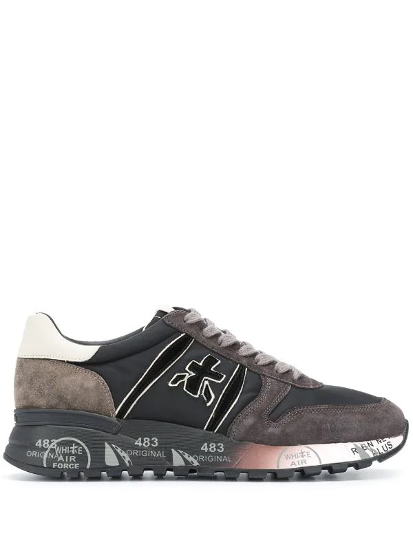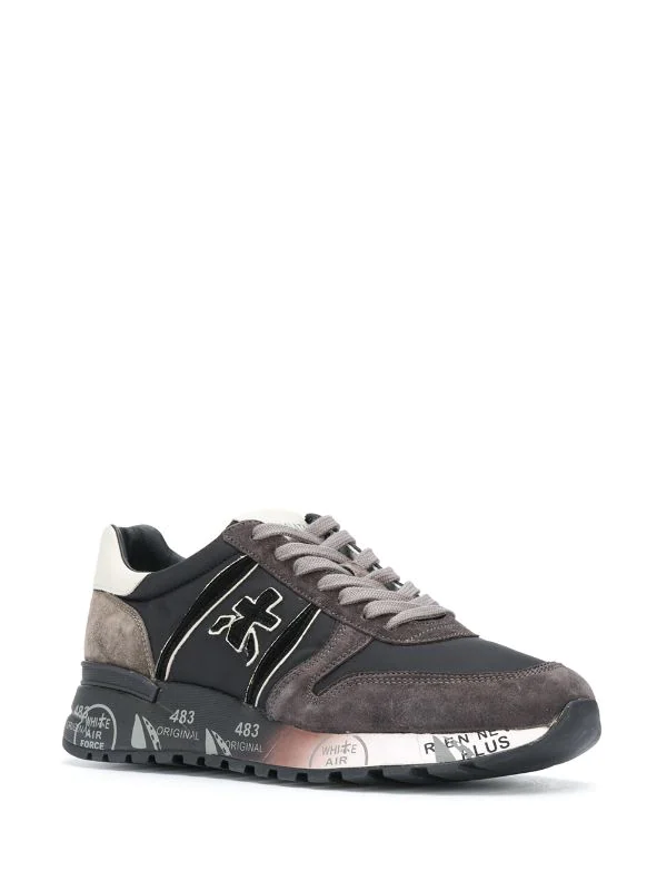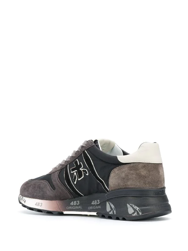 Colour-Block-Design, seitliche Logo-Prägung, Logo an der Fersenkappe, Logo-Patch an der Zunge, Logo-Prägung im Fußbett, runde Kappe, Schnürung vorne, flache Gummisohle. Material: Leder.