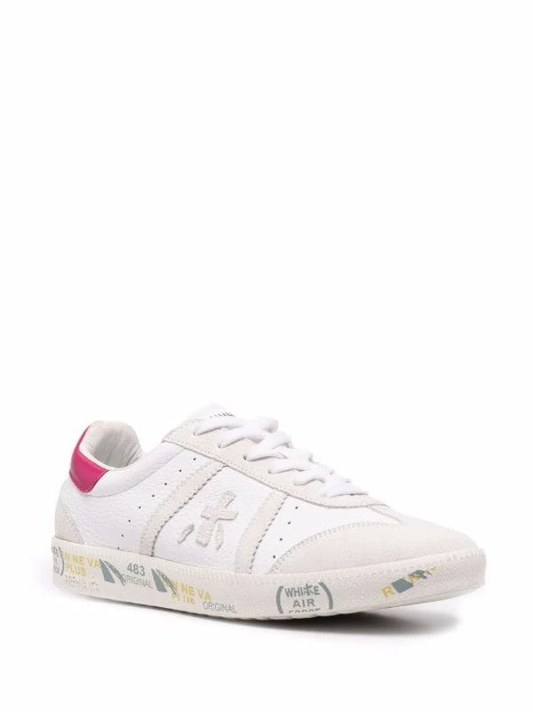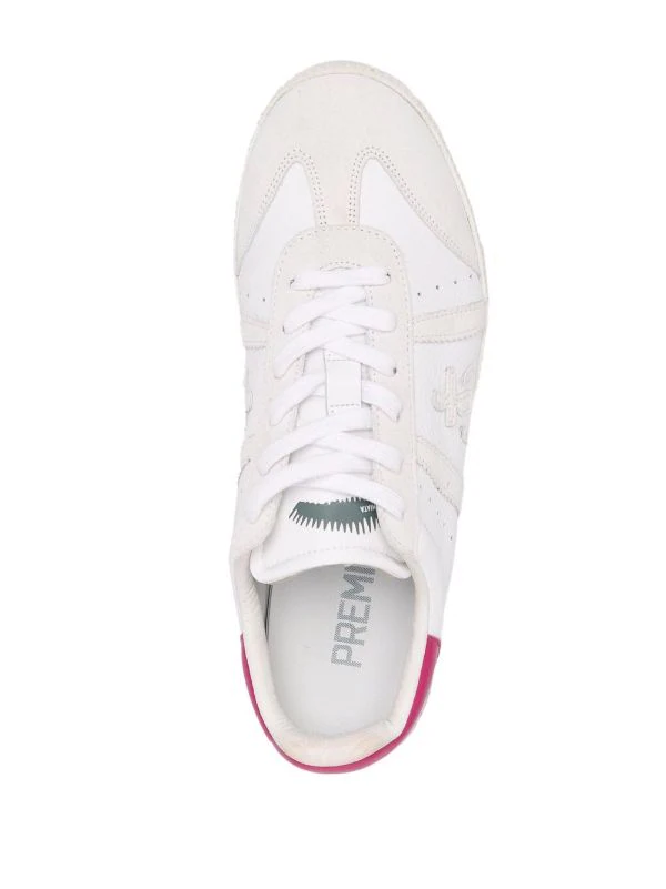 Kontrastferse mit Logo, Schnürung vorne, flache Gummisohle, Logo-Patch an der Seite, runde Kappe. Farbe: Weiß. Material: Kalbsleder.