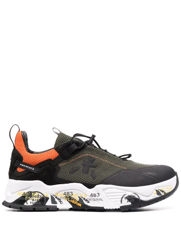 Logo-Patch an der Seite, Text-Print, Kontrastdetails, runde Kappe, Knebelverschluss vorne, klobige Gummisohle. Material: Kalbsleder.