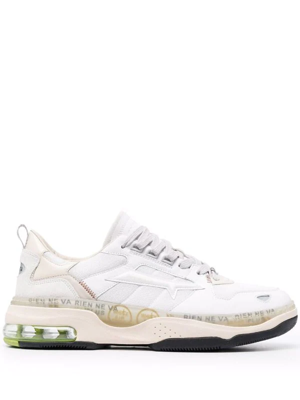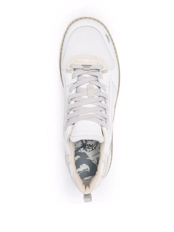 Kontrastdetails, runde Kappe, Schnürung vorne, Logo-Patch hinten, Lasche an der Ferse, Logo-Prägung im Fußbett, flache Gummisohle.