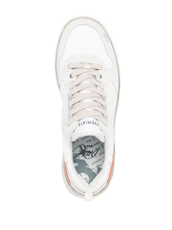 Kontrastdetails, Schnürung vorne, runde Kappe, Logo-Prägung im Fußbett. Farbe: Weiß.