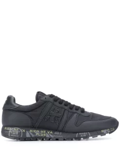 Schnürung vorne, grafischer Print, flache Gummisohle. Farbe: Schwarz. Material: Leder.
