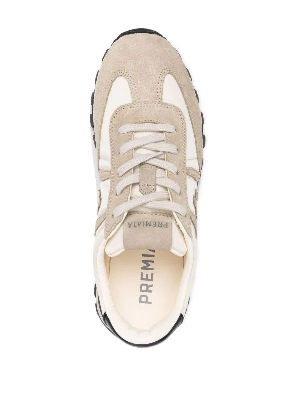 Kontrastdetails, Logo-Patch an der Seite, Logo-Patch an der Zunge, Logo-Print hinten, Schnürung vorne, mandelförmige Kappe, Logo-Prägung im Fußbett, flache Gummisohle. Material: Kalbsleder.