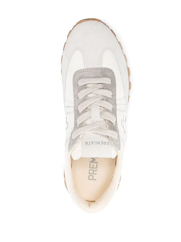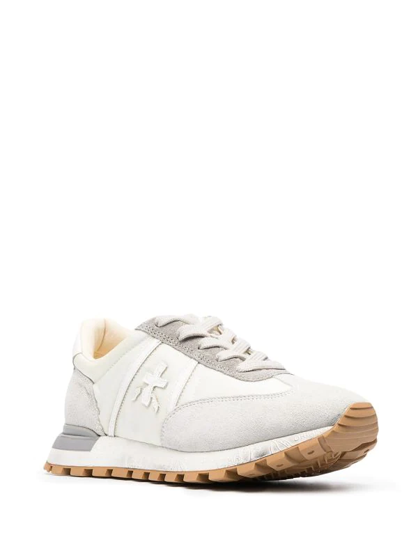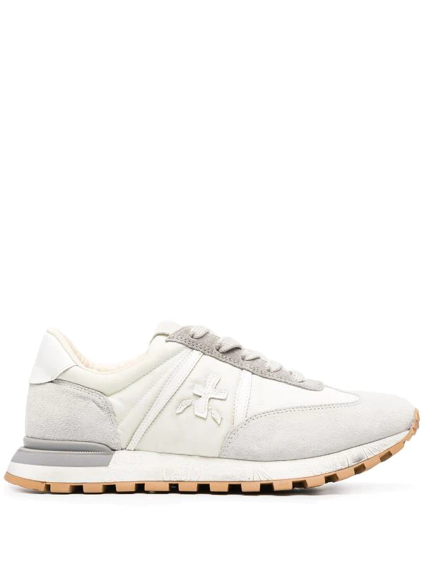 Kontrastdetails, mandelförmige Kappe, Schnürung vorne, Logo-Patch an der Zunge, flache Gummisohle.