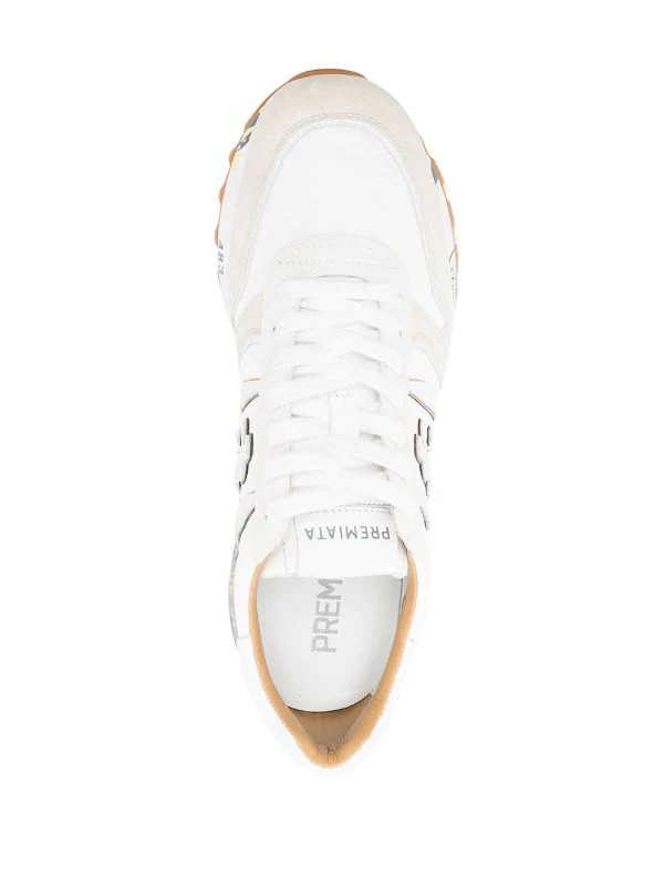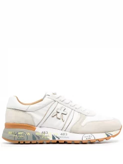 Schnürung vorne, flache Gummisohle. Material: Kalbsleder.
