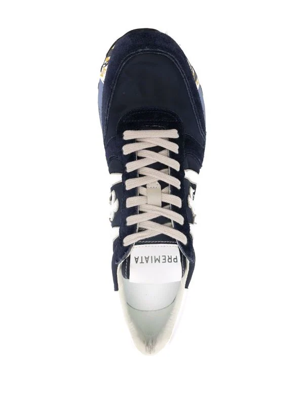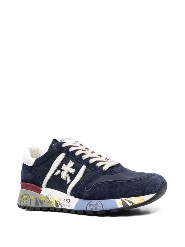 Colour-Block-Design, Wildleder-Einsätze, Stempeldetail, Schnürung vorne, runde Kappe, Logo-Patch an der Zunge, Logo-Prägung im Fußbett, klobige Gummisohle.
