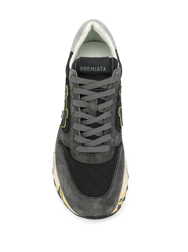 ‚Mick‘ Sneakers von White Premiata. Merkmale: Gummisohle, Logo-Patch an der Zunge, Schnürung vorne und runde Kappe.